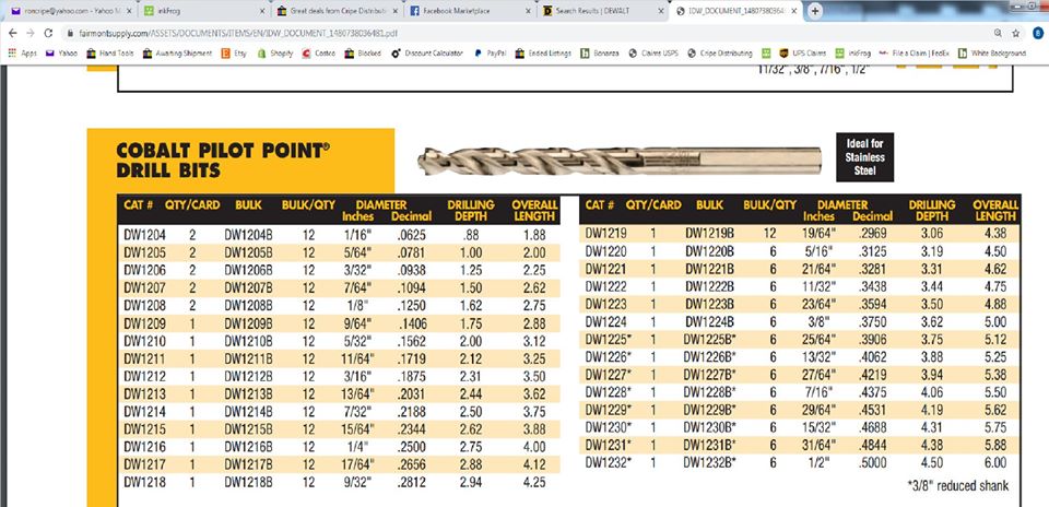 Dewalt Drill Bit Display Case with 270 Cobalt Pilot Point Drill Bits