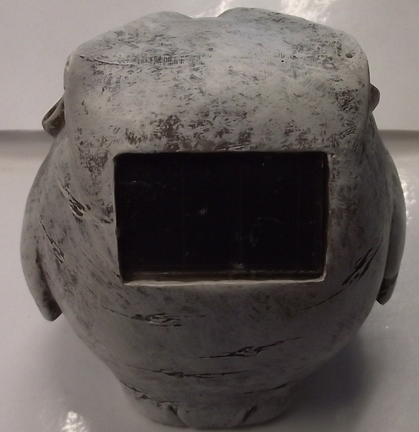 - Creatively Cast in Resin with Solar Powered LED Eyes that Automatically Glow at Dusk.