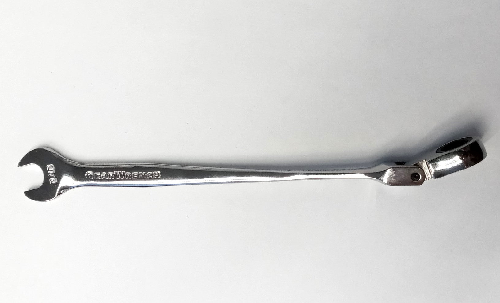 - Flexible head on box end of wrench provides for multiple angles for better clearance in tight spaces