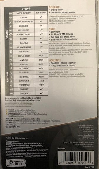 Southwire 21550T Professional Digital 600-Volt Clamp Meter True RMS