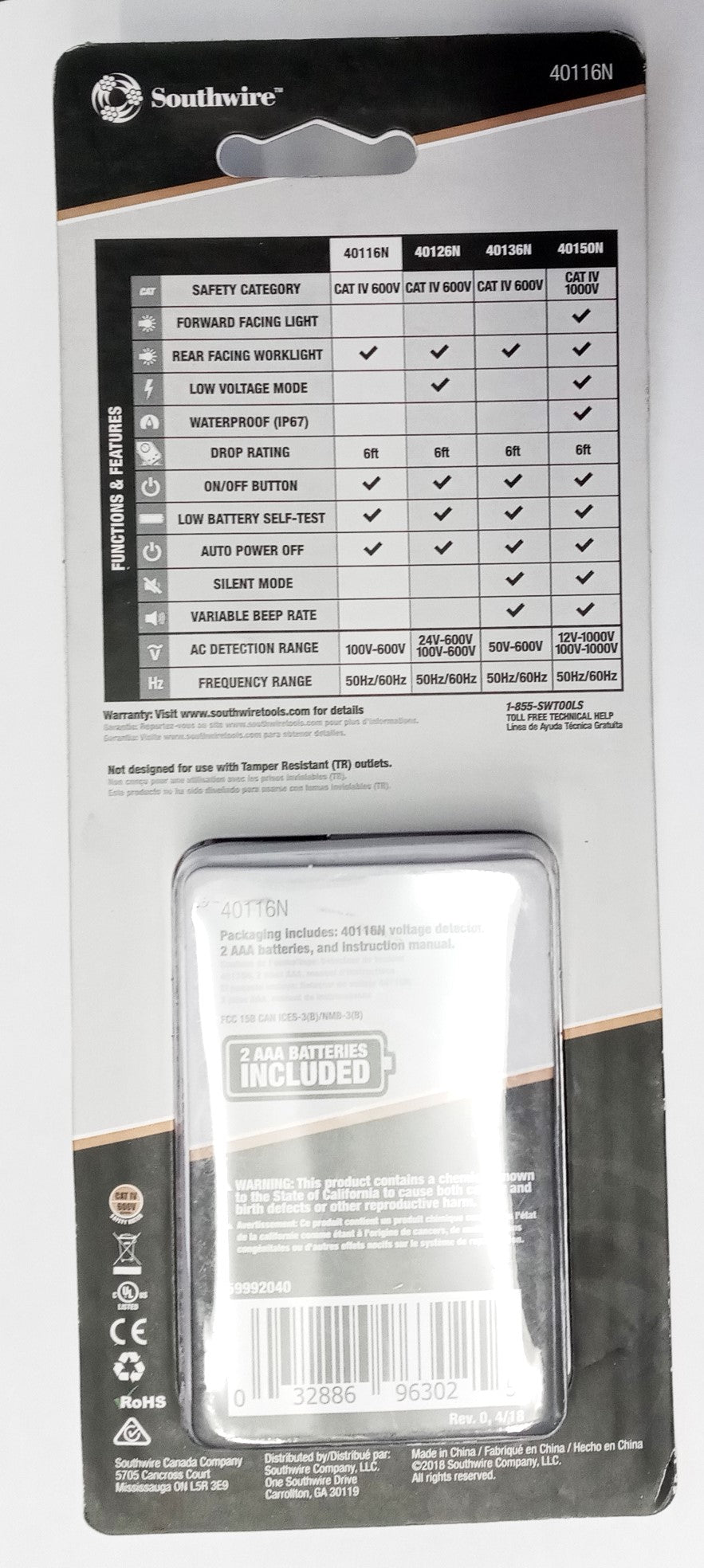 Southwire 40116N 100 to 600-Volt Non-Contact AC Voltage Detector
