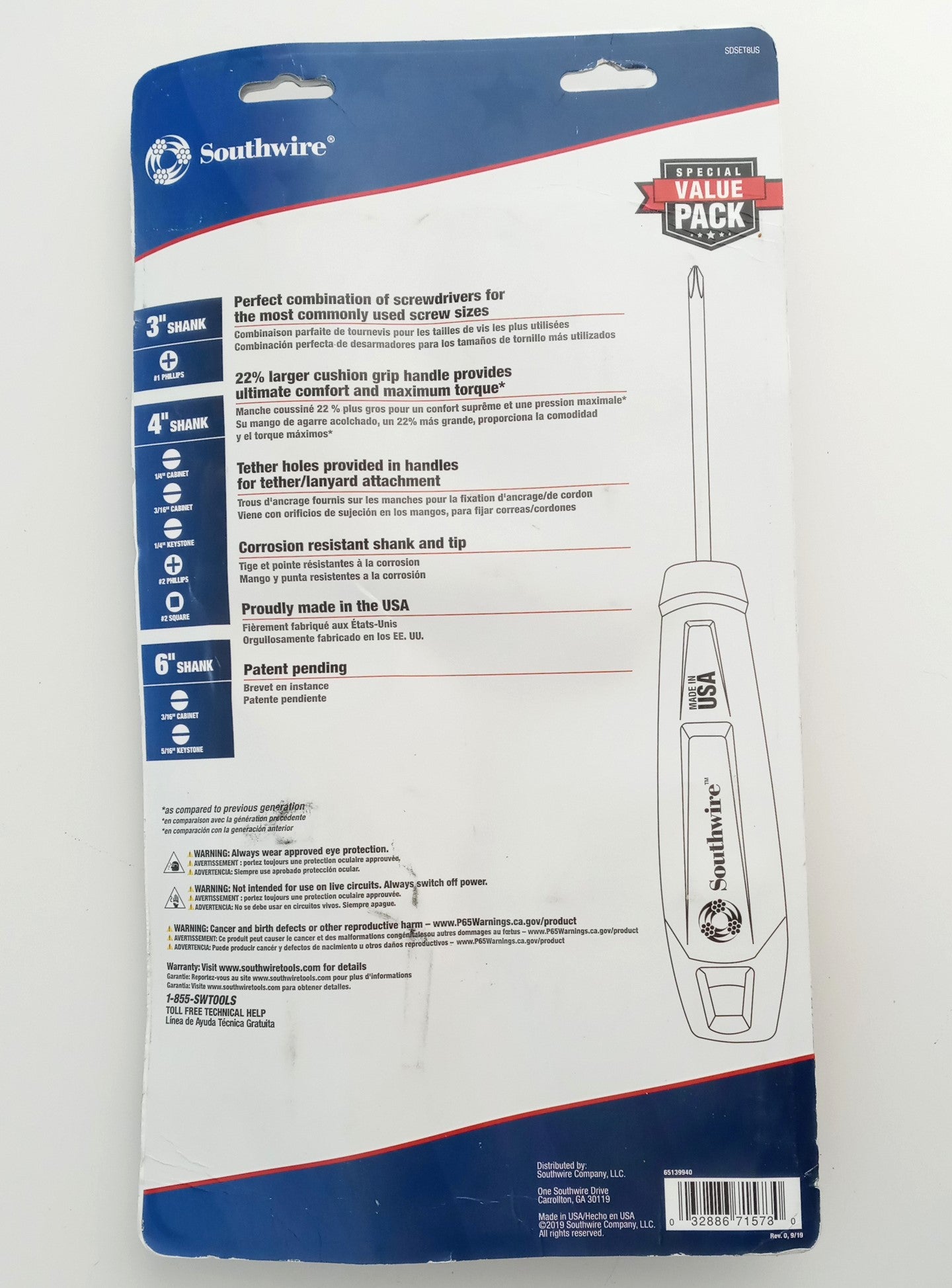 Southwire SDSET8US 8 Piece Screwdriver Set Cushion Grip USA